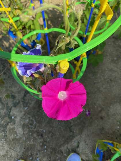 1年生のアサガオが、週末の風雨で倒れていました。