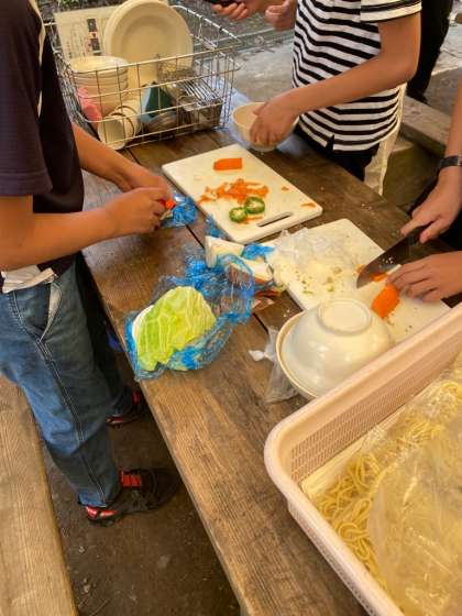 野外炊事。