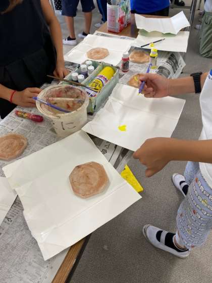 昼食後に、コースターの色付けをします。