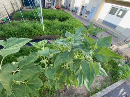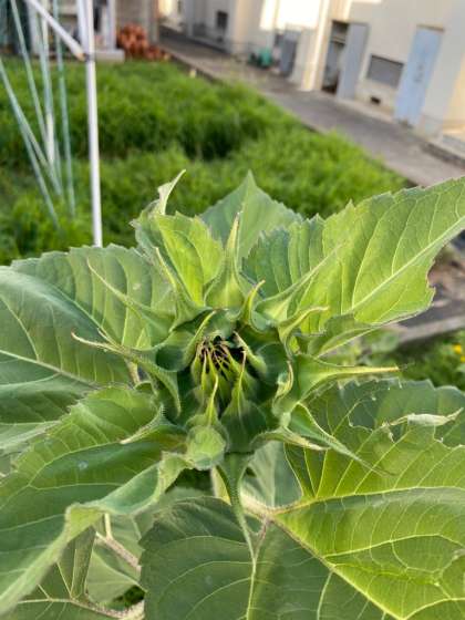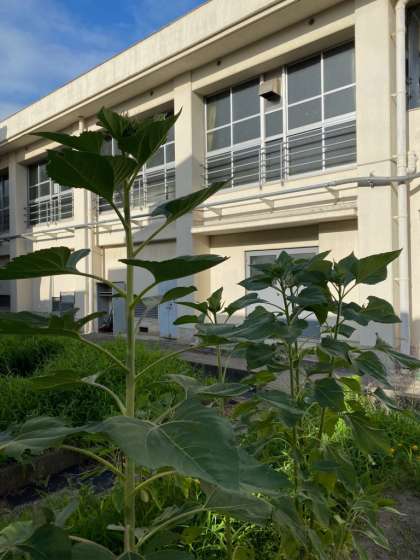 学習園のひまわり、つぼみが大きくなってきました。