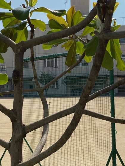 校内の低い木々にも、セミがいます。