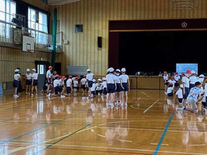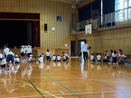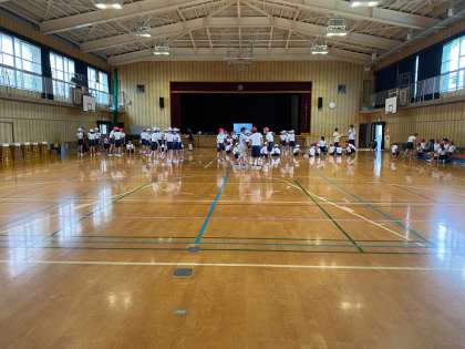 1時間目、体育館で、