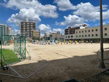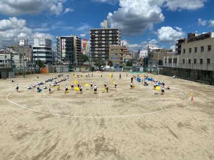 運動場で運動会の練習