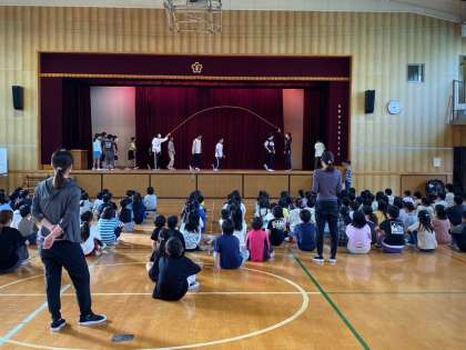 今日は、講堂での児童朝会です。