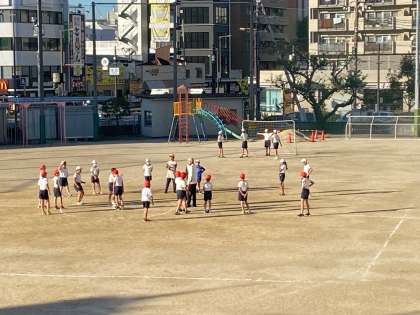 広い運動で、頑張っています。