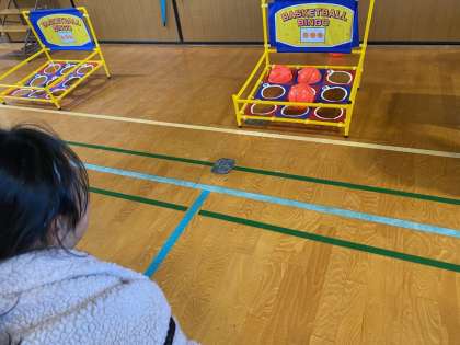 体育館では、いろんな遊びコーナーで、みんな楽しく遊んでます。