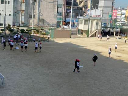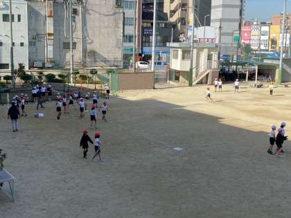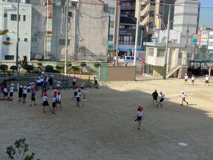 運動場で歓声が聞こえてきました。