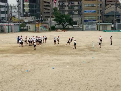 4時間目の運動場では、6年生が、ラダーを使っていました。