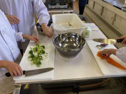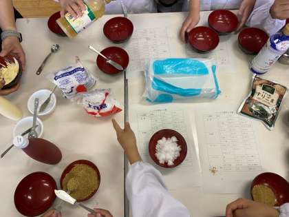 5年生 家庭科 公開日 2024/05/28 更新日 2024/05/28 学校行事 調理実習は、班別に行っています。 各班の調味料の担当の子どもが、 調味料の量をはかっています。 はじめての経験でしょうか。 苦労しています。 いいね(0)