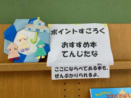そのおすすめの本は、他のマス目のミッション「1さつ、本を選んで、おすすめ本として展示する」に従って、子どもたちが「おすすめの本」として展示しています。