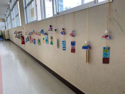 夏の風物詩 公開日 2024/07/02 更新日 2024/07/02 学校行事 2年生が作った「風鈴」が、教室前の廊下に飾ってあります。 ペットボトルなので、音はなりませんが、 ひとつひとつ、夏を表すものが丁寧に、そしてカラフルに描かれています。 かき氷、すいか、ひまわり・・・。 ひとあし先に夏が来ました。 いいね(0)