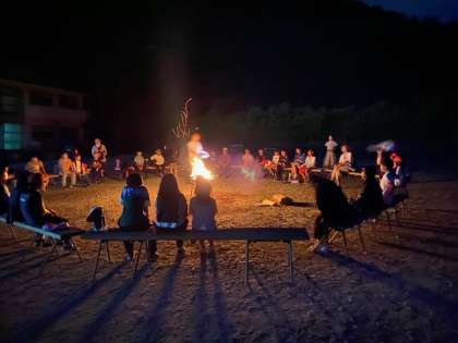 日が暮れて、キャンプファイヤーです。