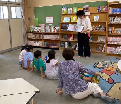 おひさまクラブのボランティアさんの読み聞きかせを楽しむ児童。