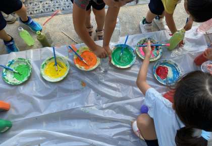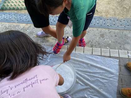 1年生が、カラフルな水を作っています。