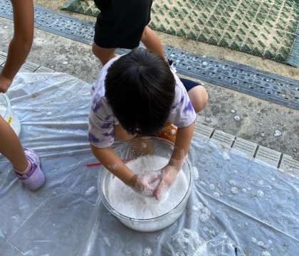 別の場所では、シャボン玉を作っています。