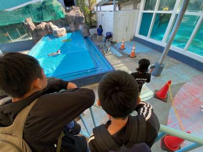 ペンギンパレードを見ています。