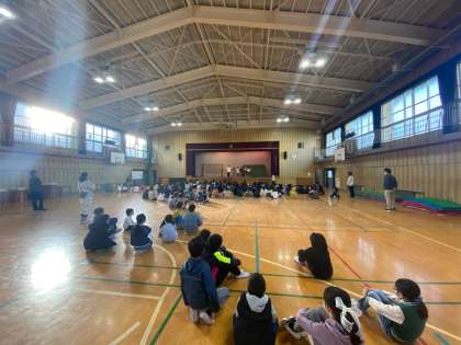 今日の児童集会は、体育館でクイズ大会です。