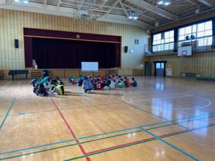 幼稚園の園児さんとたこあげ大会 公開日 2025/01/30 更新日 2025/01/30 学校行事 1年生は、粉浜幼稚園の園児さんを招いて、 たこあげ大会です。 今日は、風が強かったので、たこがあちこちへと動きます。 でも、なんとかうまくあがるたこもありました。 1年生は、しっかりと園児さんのお世話をしていました。 教室では、園児さんを自分の席に座らせてあげて、 小学校の勉強について、お話をしてあげていました。 また、来年も、たこあげしようね。 いいね(0)