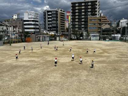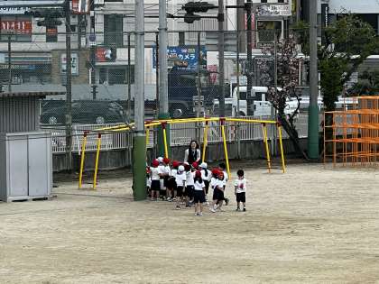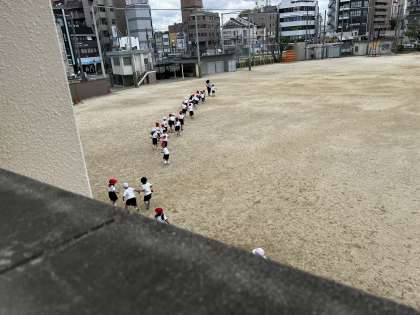途中、鬼ごっこをしたようで、元気いっぱいに運動場を走り回っていました。