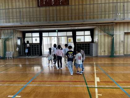 今日は、1年生と2年生で「がっこうたんけん」をしました。