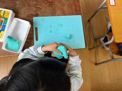 5月1日 ね!ね!ねんど! 公開日 2025/05/02 更新日 2025/05/02 学校行事 1年生が何やら大盛り上がりしているので、のぞいてみると、ねんどあそびをしていました! はじめて使う、かたい油ねんどを、柔らかくするために、ひねったりこねたり丸めたり… できたよ!とたくさん見せてくれました! いいね(0)