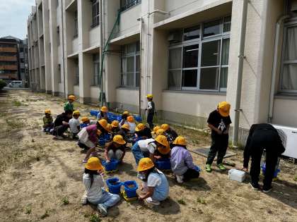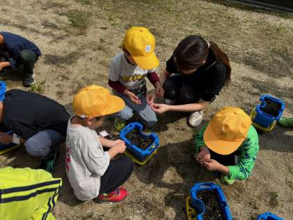 午前中に用意した植木鉢に、あさがおのたねをまきました!