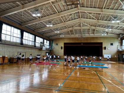 まわる!ころがる!5年生! 公開日 2025/05/12 更新日 2025/05/12 学校行事 体育館では、5年生がマット運動の学習中です。 1人ひとりの得意さに合わせて、苦手な技にチャレンジです! 途中、開脚前転のコツについて、みんなで共有しました! いいね(0)