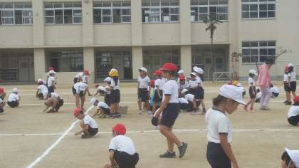 本日の児童集会は、石拾いです。トラックの内側を中心に行いました。奇数学年は校舎側、偶数学年は道路側を担当しました。