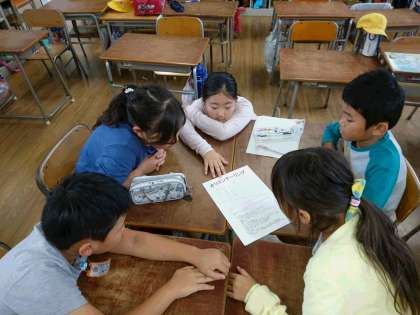 来週19日(木)になかよし遠足で1年〜5年のみんなで長居公園に行きます。今日は、朝タイムになかよし班に分かれて説明会を行いました。