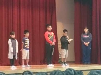 今日は、校長先生のお話の後、代表委員会の後期の人たちの認証式と前期の人たちのあいさつを行いました。