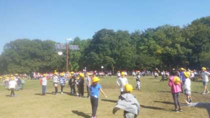 グループ別でのオリエンテーリング。ゲームやクイズに答え、すべての班がゴールしました。