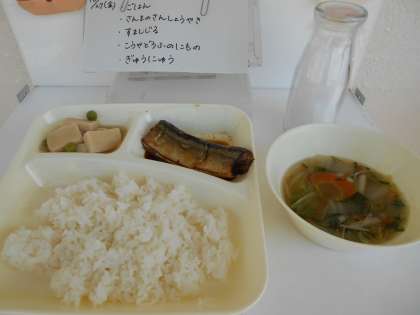 10月27日の給食 公開日 2017/10/27 更新日 2017/10/27 お知らせ 今日の献立は、【ごはん、さんまのさんしょう焼き、すまし汁、高野どうふの煮もの、牛乳】でした。 1〜5年生がなかよし遠足のため、6年生だけの給食でした。 さすが6年生、さんまの骨を上手にとって、きれいに食べることができていました! いいね(0)