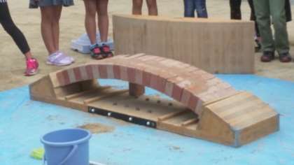 地域連携支援事業の第4弾として、5年生がアーチ橋作りと手話教室を体験しました。