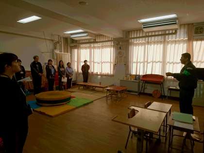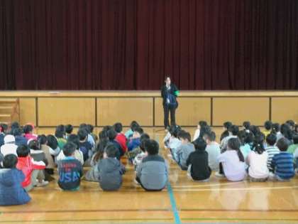 模擬体験後は、児童のみんなは講堂で警察の方から、気を付けなければならないことをお話していただきました。合わせて教職員もたんぽぽ教室で指導者として児童の安全を守るために、気をつけなければならないことを研修していきました。
