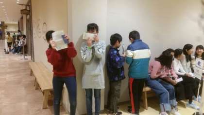 10時15分開始の1コマ目に並んでいます。注意の中で、遅刻は許されないとの事でした。レッスンが待ち遠しいですね。