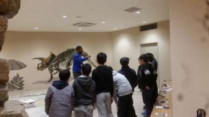 恐竜の化石を発掘するコーナーや実験室のコーナーもあります。