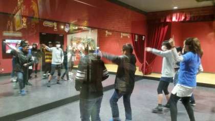 ブロードウェイの様子をアップし忘れていました。ただいまレッスン中です。鏡を見ながらインストラクターの真似をしていきます。