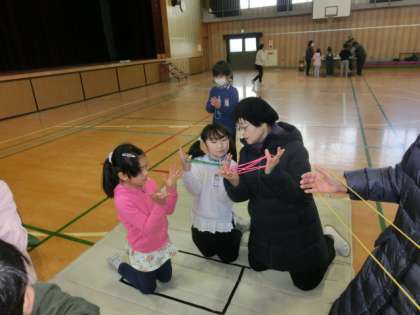 地域連携学習 -昔あそび(1年)- 公開日 2018/02/17 更新日 2018/02/17 低学年 2月6日(火) 今年も地域の人に来校いただき、1年生が昔あそびを教えてもらいました。けん玉のわざや新聞を使っての折り紙、あやとり等、今では身近では見られなくなった遊びがたくさんありました。 子ども達の生活の中には、電子ゲームで遊ぶことが多くなっていますが。昔から伝わる伝承遊びには、楽しい要素がたくさんあります。子どもたちにとって、その楽しみを知る良い機会になったのではないでしょうか。 いいね(0)