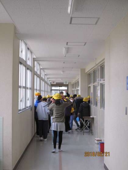 その後、津波の発生のおそれがあることで、校舎3階に避難することを行いました。少しおしゃべりの声がありましたが、押し合わずにすばやく行動することができていました。