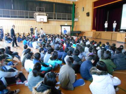 野菜の多さや、野菜を切るスピードに驚いた児童が多かったようです。発表の最後には、「すききらいせずに、食べ物と調理員さんに感謝して食べましょう」と呼びかけました。