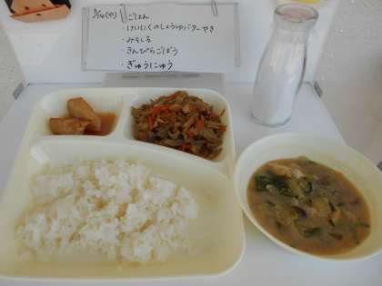 3月14日の給食 公開日 2018/03/14 更新日 2018/03/14 お知らせ 今日の献立は、【ごはん、鶏肉のしょうゆバター焼き、みそ汁、きんぴらごぼう、牛乳】でした。 和食が好きな児童が多いので、大人気のメニューでした。 きんぴらごぼうは、甘めの味付けで、ごはんによく合いました。そのため今日はごはんも完食でした! いいね(0)
