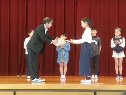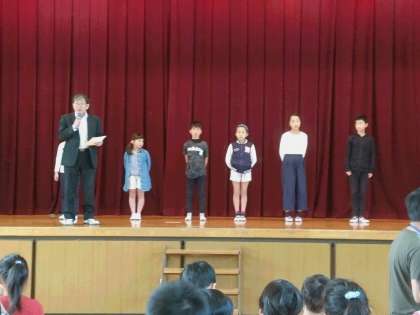 今日の集会の時間に前期代表委員の認証式がありました。4年生・5年生・6年生から各学年2名の代表委員の人たちで、会を運営していきます。運動会を区切りとした10月まで、児童の中心となっていろいろな行事を計画していきます。