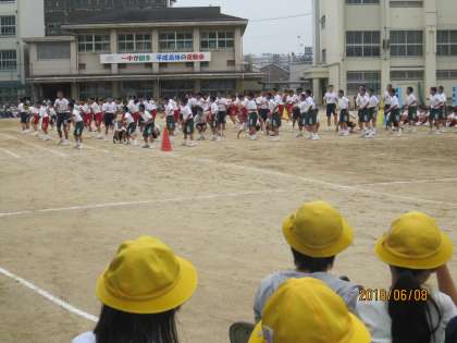今日は、6年生が小中連携の取り組みで、住吉第一中学校の運動会の見学に行きました。