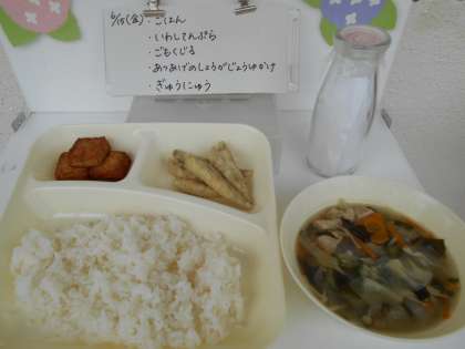 6月15日の給食 公開日 2018/06/15 更新日 2018/06/15 お知らせ 今日の献立は、【ごはん、いわしてんぷら、五目汁、あつあげのしょうがじょうゆかけ、牛乳】でした。 いわしてんぷらは、さくっと揚がっていました。骨ごと食べられる魚なので、しっかりよくかんで食べるよう伝えました。 いいね(0)