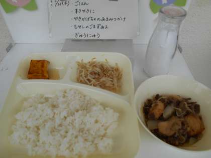 6月21日の給食 公開日 2018/06/21 更新日 2018/06/21 お知らせ 今日の献立は、【ごはん、すき焼き煮、焼きかぼちゃの甘みつかけ、もやしのごま酢あえ、牛乳】でした。 プールに入った学年もあったので、いい食べっぷりでした!特にすき焼き煮が大人気でした。 いいね(0)