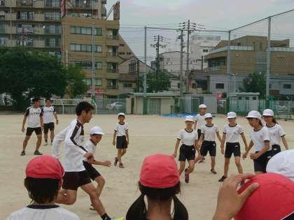プロの足技にどれぐらい太刀打ちできるかなと思いましたが、子どもたちも積極的にゴールを狙っていき、得点を重ねていました。