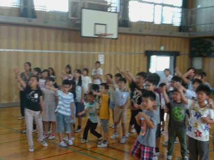 1学期最後の木曜日の朝タイムは、集会委員会によるゲーム集会でした。今日のゲームは、『世界一周ジャンケン』です。なかよし班ごとに4つのコーナーに分かれてスタートです。集会委員会の人とジャンケンをして、勝ったら一コマ進めて、一周回って来たらゴールです。