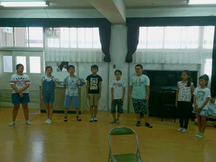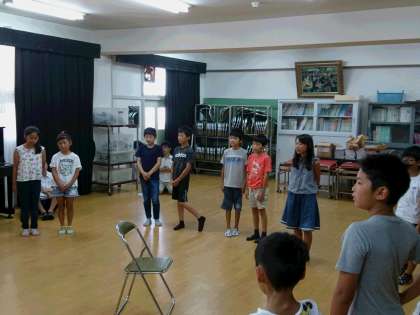 今日は5年生が登校して、明日からの林間学習に向けて直前の打ち合わせを行いました。また、キャンプファイヤーの声出しの練習等も行いました。