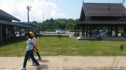 林間学習5—まほろば(2)— 公開日 2018/08/02 更新日 2018/08/02 お知らせ トイレ休憩の後、芝生で記念撮影をしています。古代風の小屋が印象的です。10時20分まほろばを出発しました。 いいね(0)