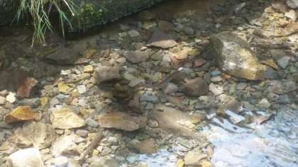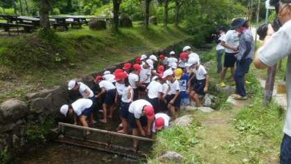 林間学習9—魚つかみ2— 公開日 2018/08/02 更新日 2018/08/02 お知らせ ヤマメが人数分放流されています。川の水はとても冷たく、10分入っていると我慢の限界になります。一人1匹をつかむことを目標にがんばっていました。 【写真上】 ヤマメが泳いでいるのが、わかりますか。 いいね(0)